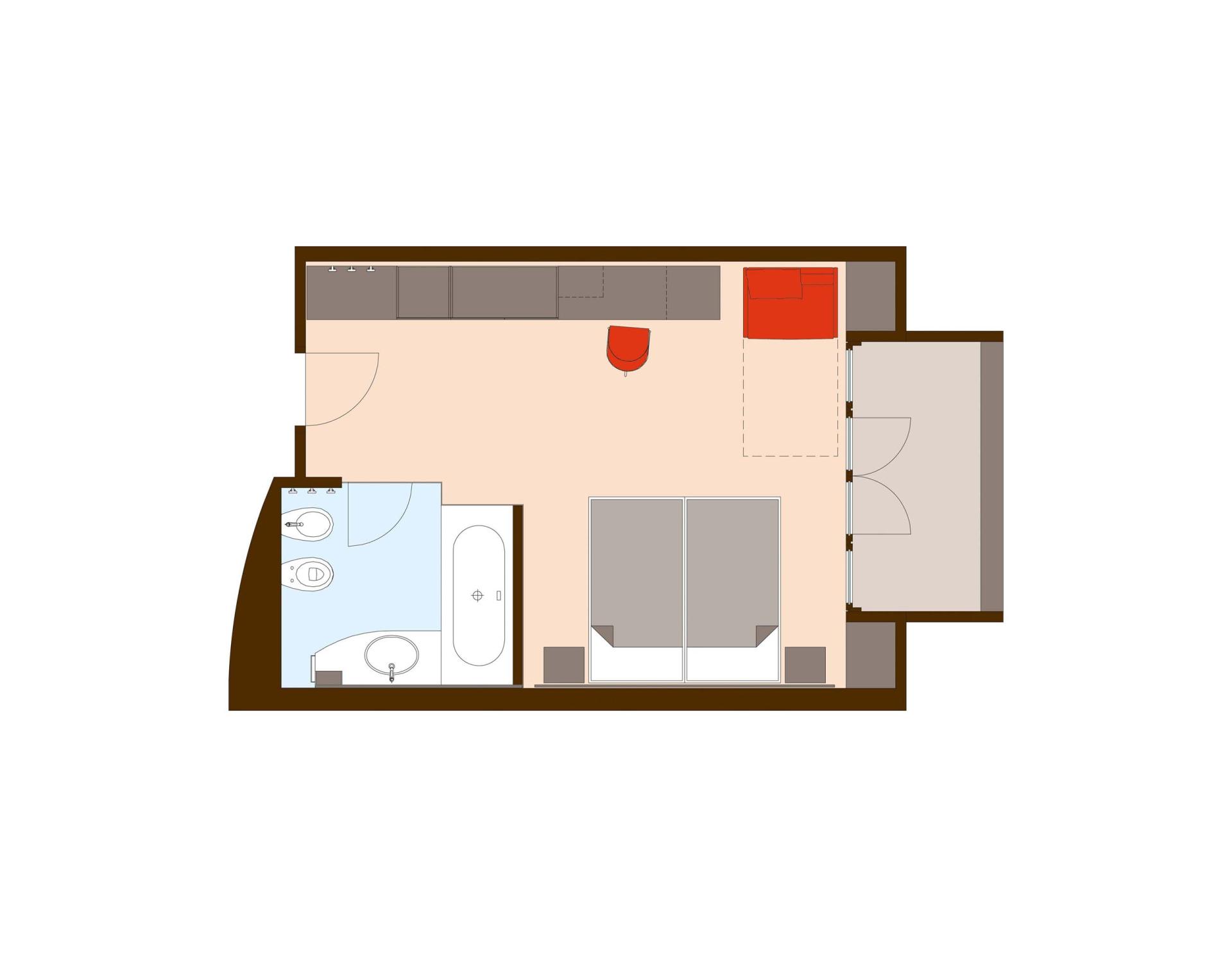 L’accogliente Classic Sole Top è una camera mansardata allestita secondo un design unico con balcone e vista sulle Dolomiti. Il sole diffonde nella camera interamente in legno un meraviglioso aroma di abete rosso e larice. Il bagno combina granito verde e vetro, funzionalità e design. Qui troverete una vasca o doccia, un bidet e un WC. Tra i servizi, sono inclusi anche una postazione per il tè con bollitore, un minibar con acqua minerale, una borsa wellness con accappatoio, una TV satellitare, una cassetta di sicurezza e un telefono.