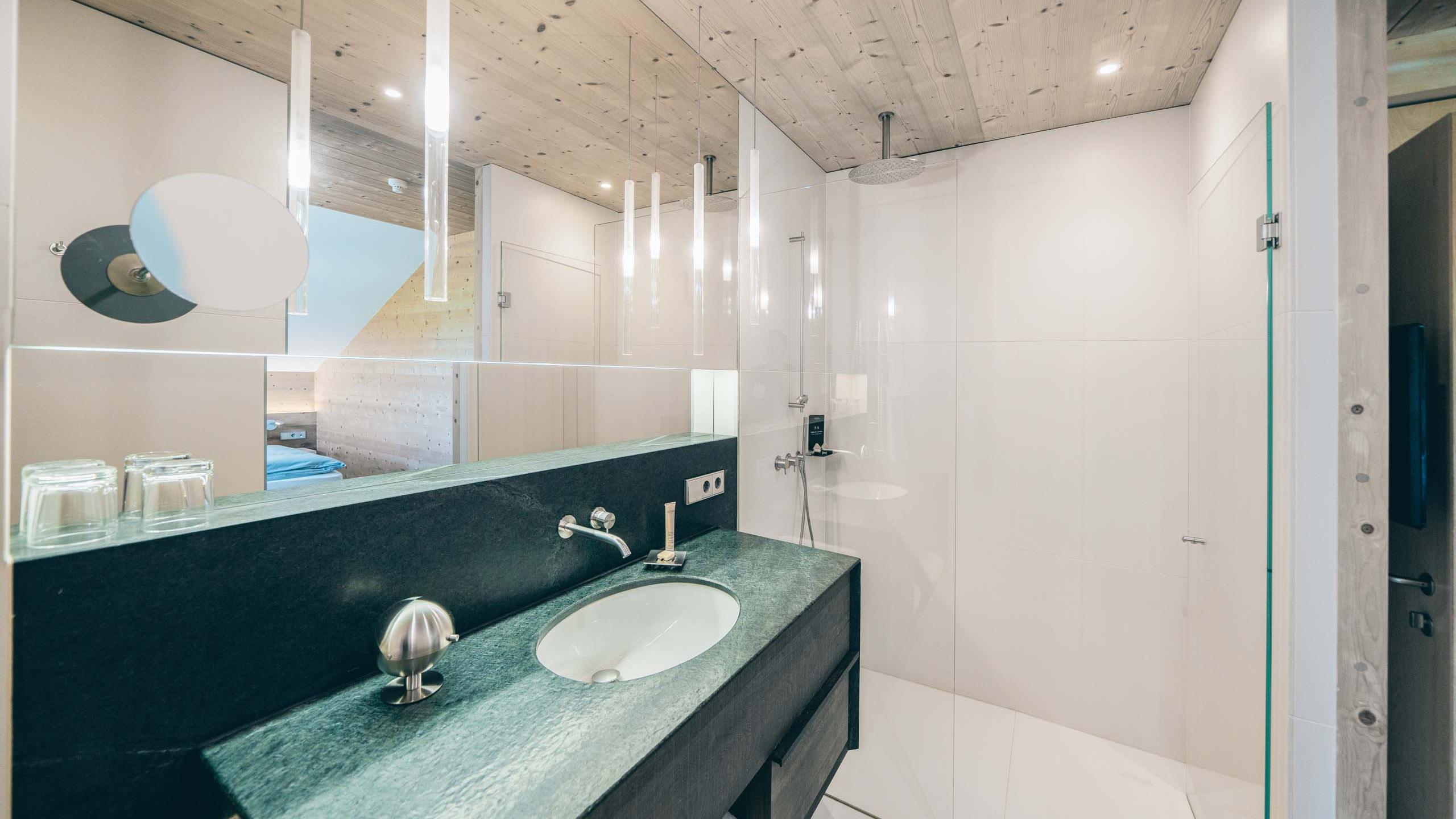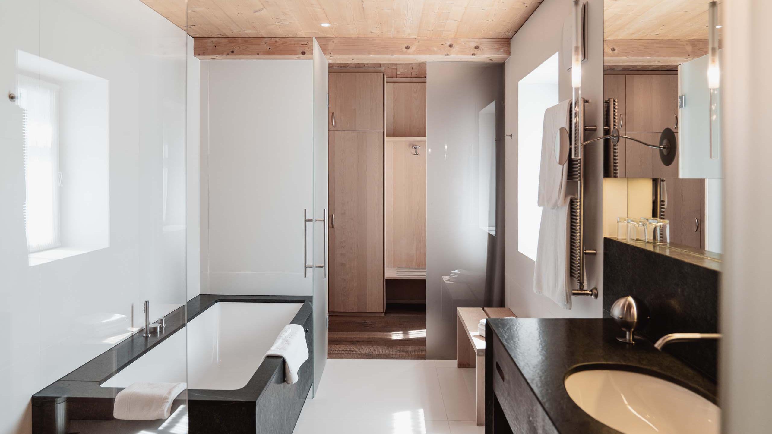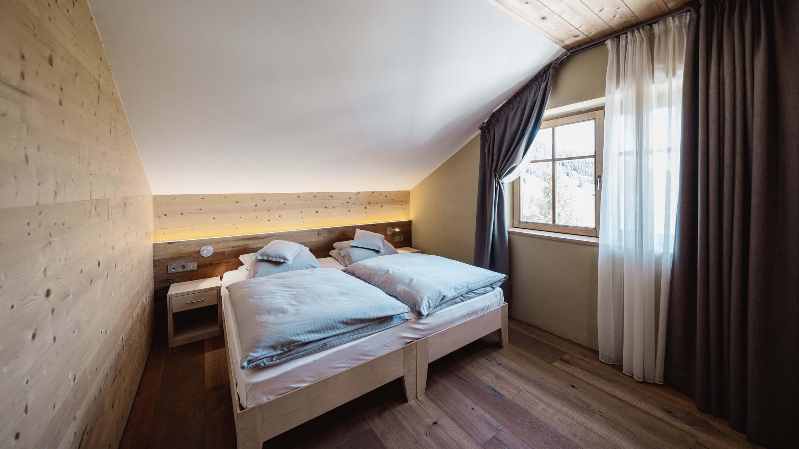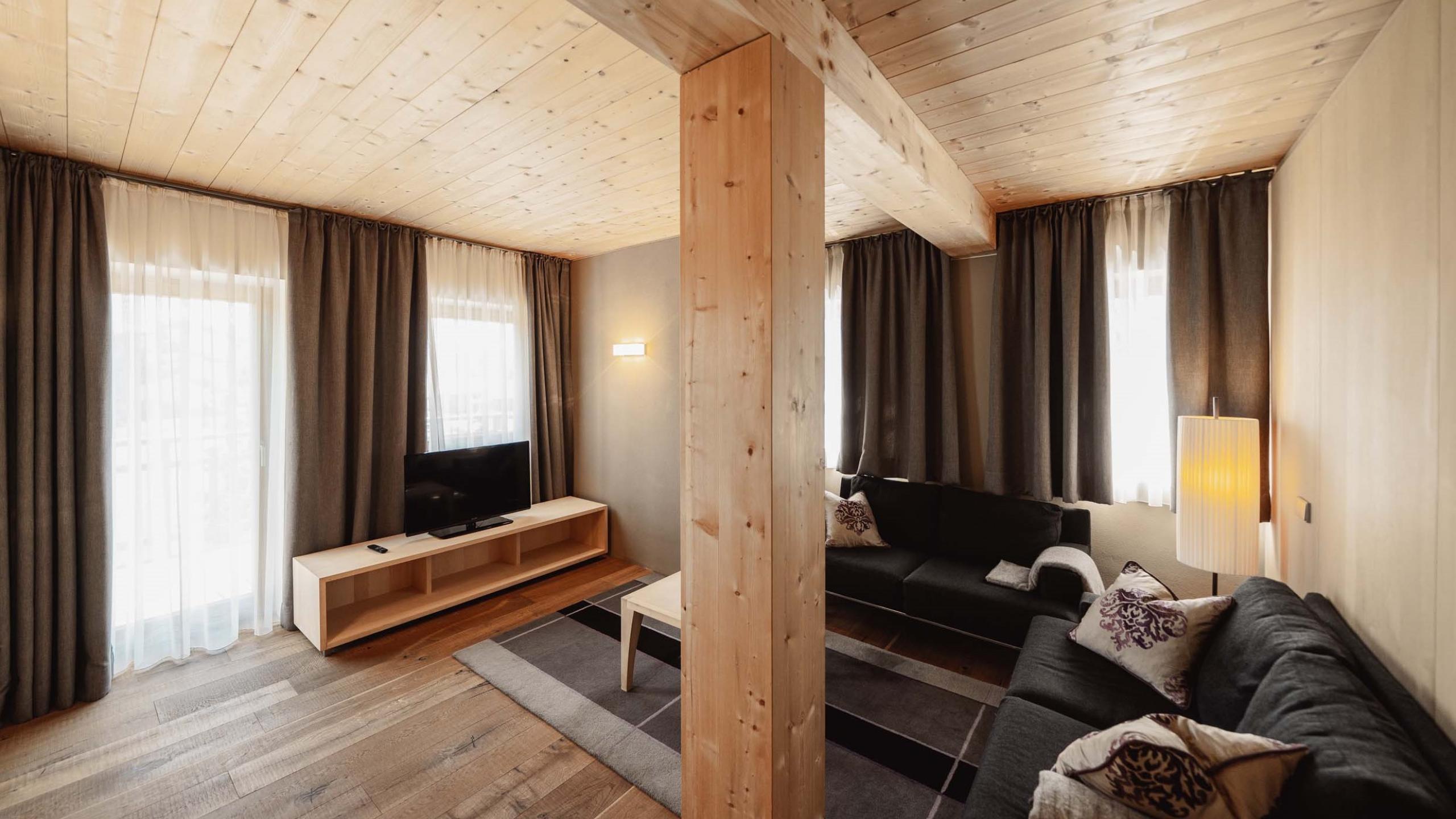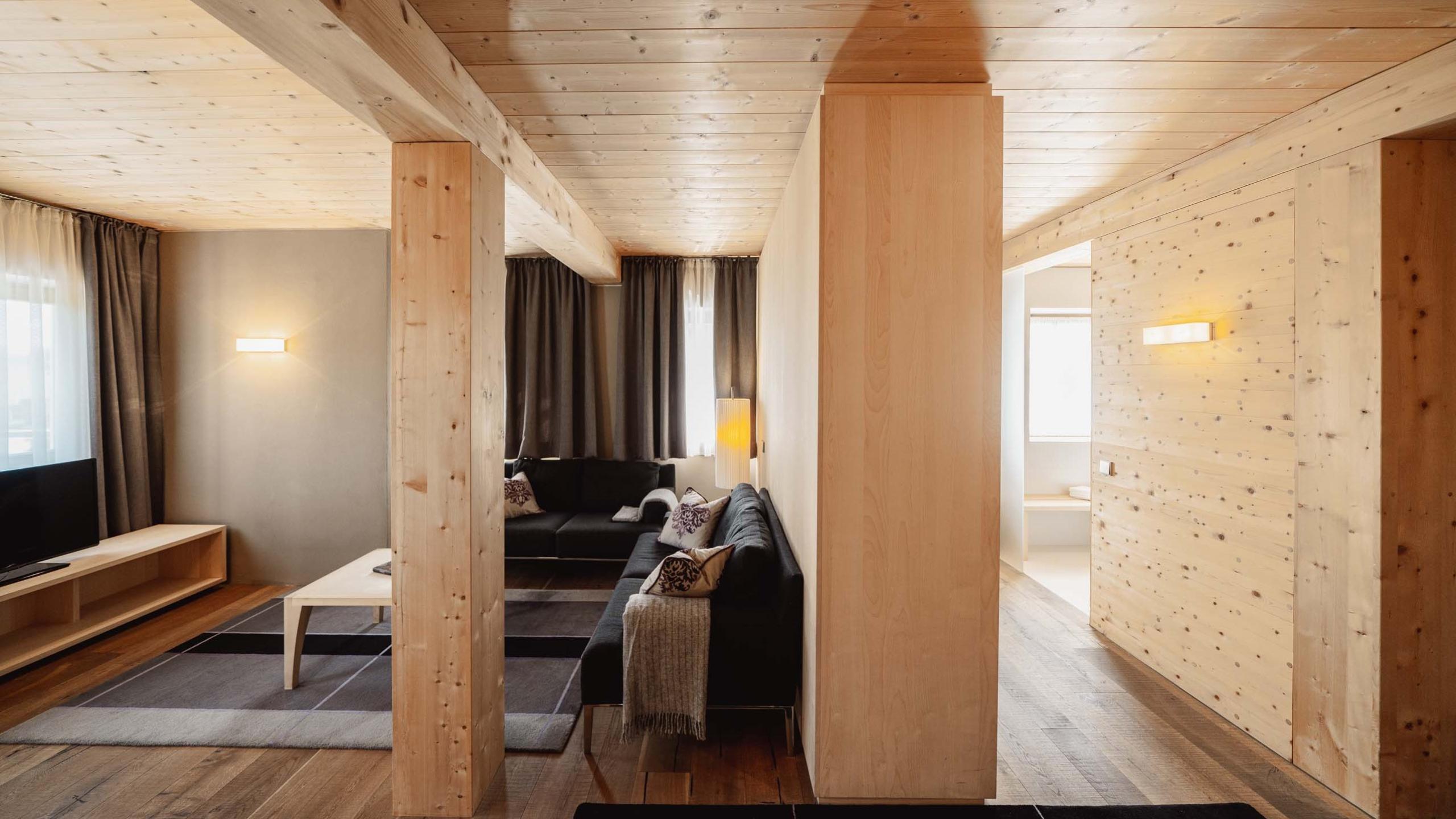 Scoprite il lusso della Suite Superior con ampio soggiorno, due camere da letto separate e una grande terrazza con vista sul giardino e sulle Dolomiti. Le camere sono realizzate interamente in legno naturale di abete rosso e larice, mentre i due bagni conquistano per il loro accostamento di granito verde e vetro. Tra i servizi di cui godrete, avrete una postazione per il tè con bollitore, un minibar con acqua minerale, una borsa wellness con accappatoio, una TV satellitare, una cassetta di sicurezza e un telefono.