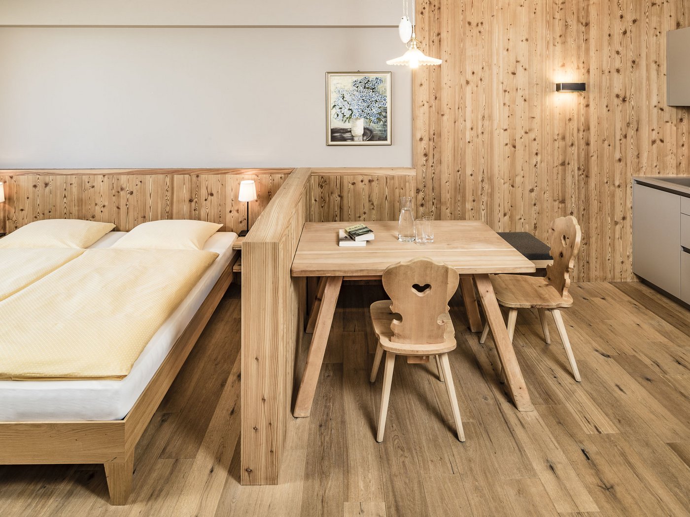 Durante la vacanza, goditi la massima flessibilità e libertà: non c'è posto migliore del nostro accogliente appartamento vacanza sull'Alpe di Siusi. L'appartamento bilocale nel Plaza Easy Living è dotato di ogni comfort che desideri per la tua vacanza in Alto Adige: la camera con letto matrimoniale e la cameretta separata con letti a castello invitano a rilassarsi dopo una giornata intensa di avventure. Inoltre, il nostro appartamento nelle Dolomiti dispone di un comodo angolo soggiorno, una piccola cucina per tè, un bagno e un ingresso separato. Qui puoi goderti la tua meritata pausa in totale privacy, senza rinunciare ai comfort di un hotel.