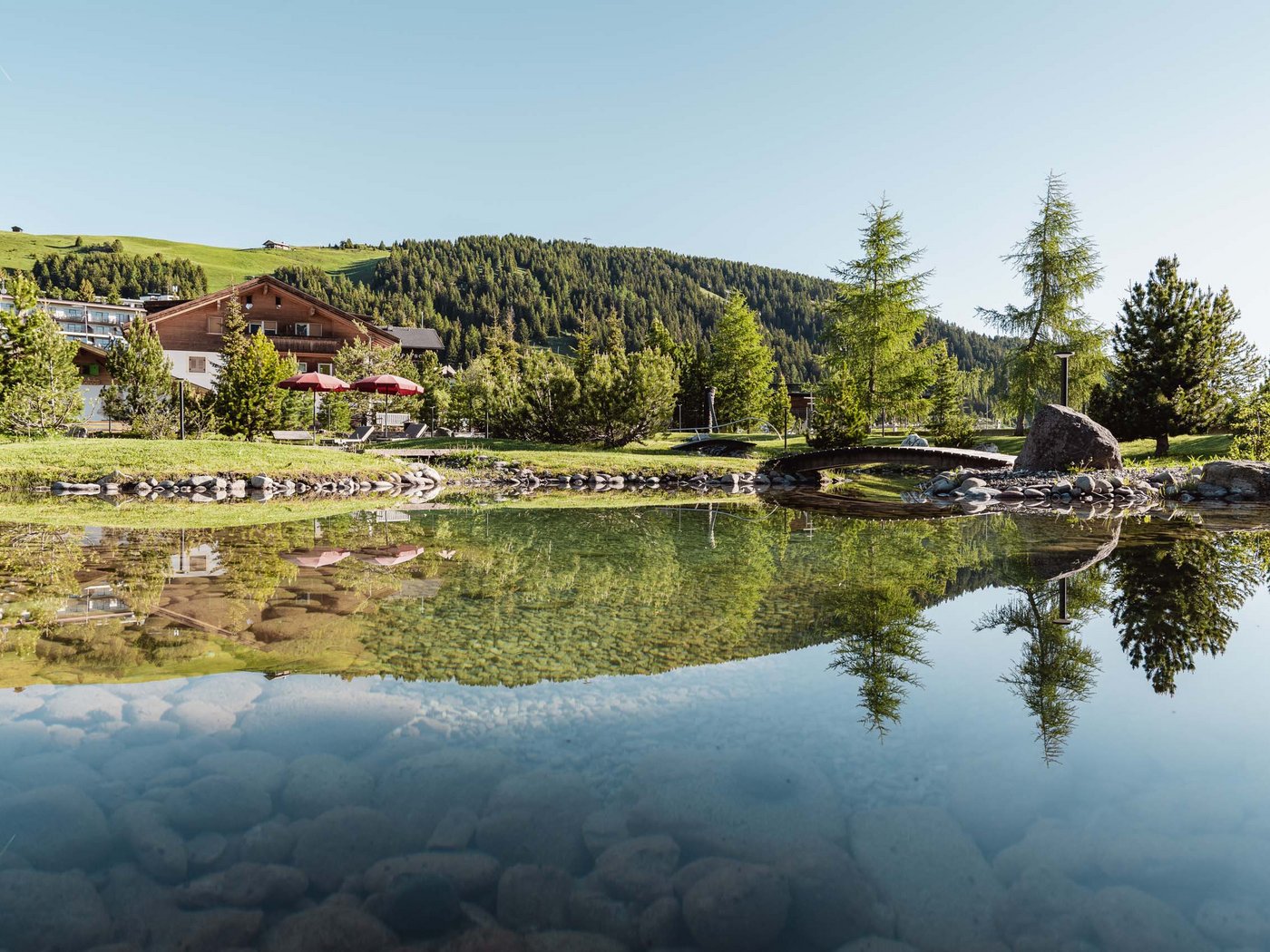 Immersa nel pittoresco giardino dell’Hotel Urthaler, la piscina all’aperto offre una magnifica vista sulle circostanti vette dolomitiche, Patrimonio Mondiale UNESCO. Che si tratti del sole del mattino, del pomeriggio dopo le avventure sull’altopiano più esteso d’Europa dove si trova il nostro hotel, cioè sull’Alpe di Siusi, o della sera al tramonto, un tuffo nell’acqua rinfrescante è un'esperienza molto speciale con questa vista e questa bellezza naturale!
